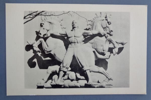 1939-1940 New York World's Fair Unused Postcard from the series "Sculpture at the World's Fair of 1940, New York" picturing a black and white photo of the statue "Labors of Man". The card was "Printed by the Meriden Gravure Company, Meriden, Conn." Size: 5 1/2" wide by 3 1/2" high. Condition: Excellent.
