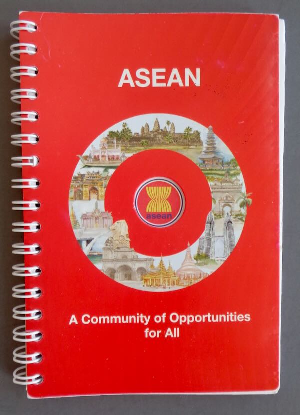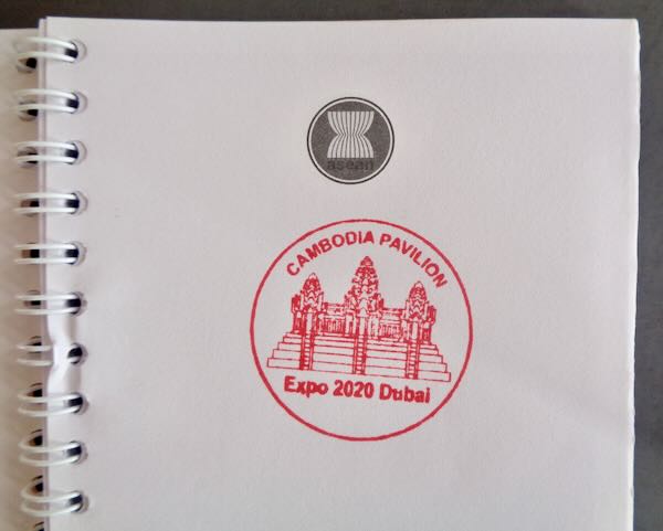 Modern Fairs Spiral Bound Note Pad from the "Cambodian Pavilion" at "Expo 2020 Dubai", as stamped on the first page of the booklet. The cover is marked "Asean", "A Community of Opportunities for All" with pictures of many Ancient Asian Temples. There are loads of pages to write on. Size: 4" wide by 5 7/8" high plus the size of the spiral. Condition: Excellent.