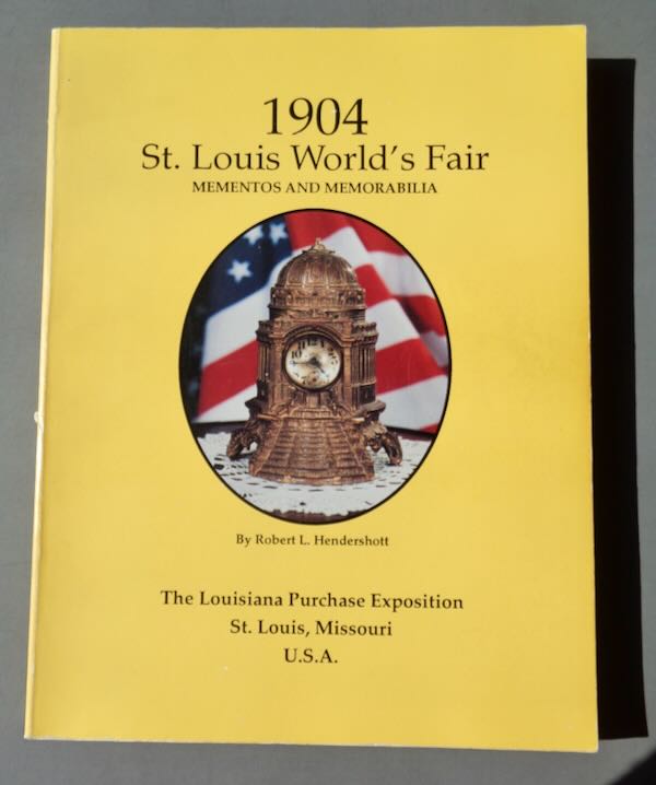 Modern Reference "1904 St. Louis World's Fair Mementos and Memorabilia" reference book by "Robert L. Hendershott". This soft cover book contains 364 pages of pictures, catalog numbers and descriptions of thousands of Louisiana Purchase Souvenirs. The book is broken up into 67 categories. Every item is photographed in black and white and there are 2 color pages of some of his favorite items in the center. Size: 8 1/4" wide by 10 3/4" high. Condition: Excellent with an 1/8" damage on the cover's spine.
