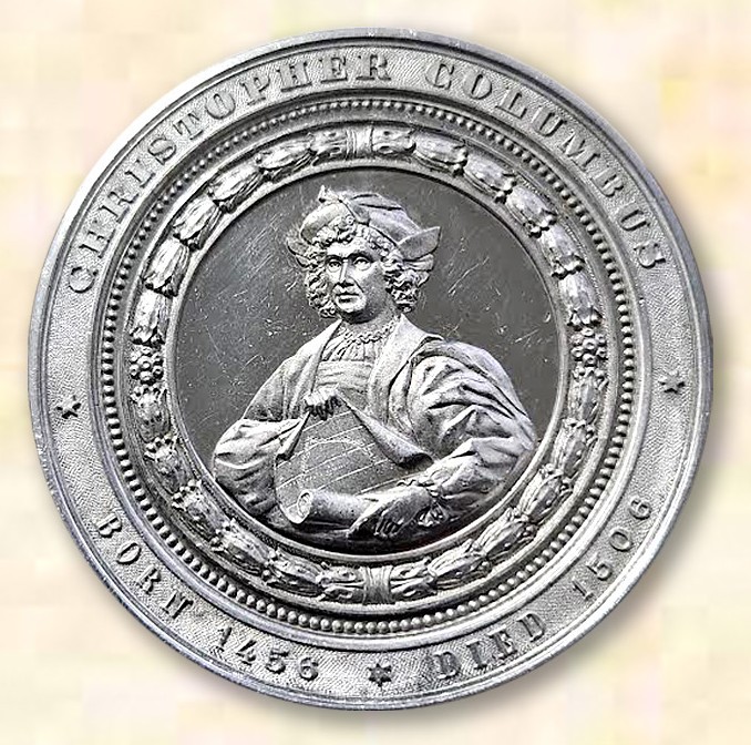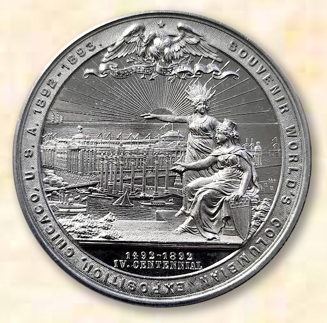 1893 World's Columbian Exposition The Journey - Semi-High Relief, Aluminum, 50mm Produced in Italy for the Columbian Expo, this iconic design has a proof-like cameo appearance and is very well struck. Obverse has the Discoverer in a circle unrolling map, surrounded by oak leaves. Soft cap and clean shaven face gives Columbus an "elf-like" appearance. Reverse has two divine women seated, overlooking the Expo as a majestic eagle above holds a riband inscribed E. Pluribus Unum. Listed as Eglit 55, Starlust ST-eg-55a, Unlisted in HK or SC$. An R-5 which we give a grade of MS-64+. There are some hairlines in the obverse fields, but they seem to vanish when the medal is in the light. A very impressive piece for collectors. Provenance - Steve Starlust Collection.