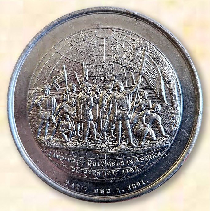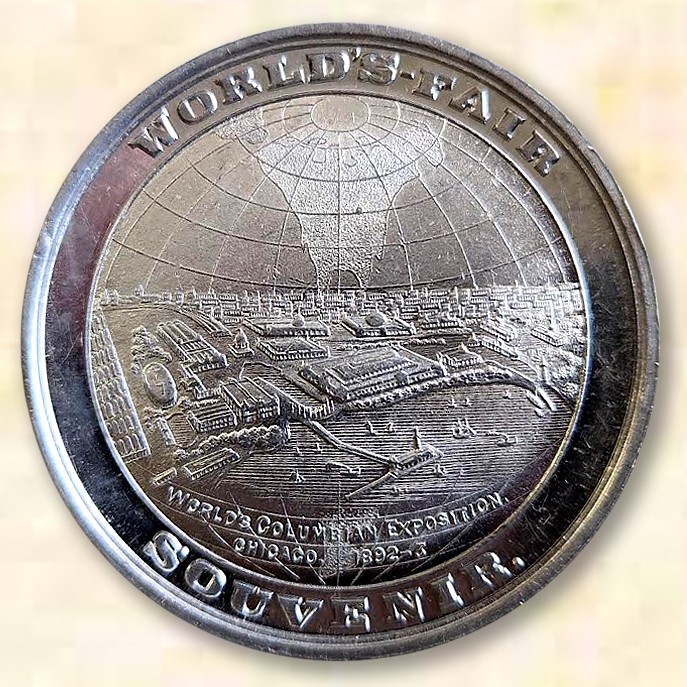 1893 World's Columbian Exposition World Globe Dollar - Aluminum, 44mm Here's a super nice example of this popular medal. Well struck with highly reflective surfaces. The obverse features the globe with a view of the fair in the foreground. The reverse has a crisply struck World Globe, and Landing of Columbus in America. Struck in two different thicknesses, a thin planchet 2.5mm and this example of the thick planchet 3.5mm. Listed as Eglit 9, Starlust ST-eg-9a, HK-174, and Shevlin SH 6-31. A relatively common R-3 which we grade as a strong MS-65+. Provenance - Steve Starlust Collection.